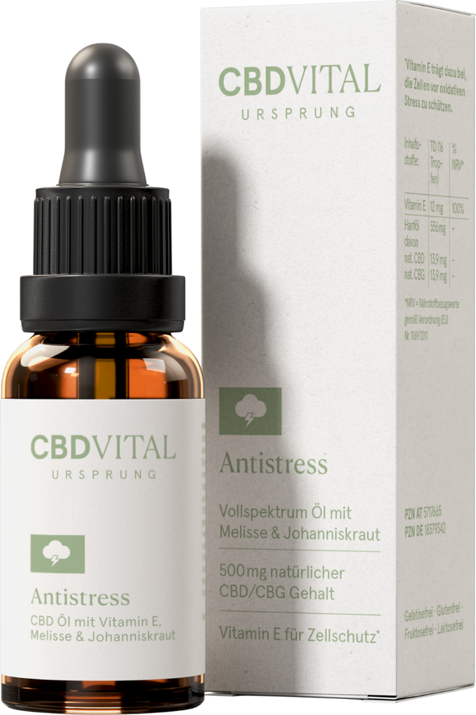 Im Alltag in Balance zu bleiben, ist nicht immer einfach. Die Arbeit, hohe Ansprüche an sich selbst, Termine und Verpflichtungen sowie die ständige Erreichbarkeit zerren an den Nerven. Andauernder Stress wirkt sich negativ auf unser Wohlbefinden aus – und zeigt sich etwa durch Verspannungen, Kopfschmerzen oder Schlafstörungen. Die CBD VITAL ANTISTRESS Formel kann regelmäßig für natürlich mehr Ruhe und Gelassenheit angewendet werden. Der traditionelle Komplex aus CBD, Johanniskraut und Melisse unterstützt bei Stress, innerer Unruhe, Anspannung und ähnlichen Symptomen. CBD Ursprung ANTISTRESS – um den Alltag mit mehr Leichtigkeit meistern.