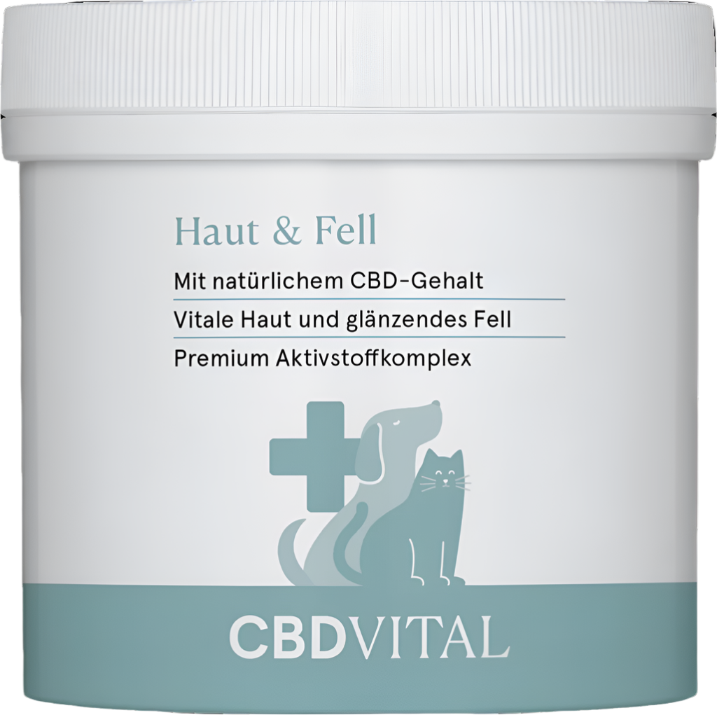 Für die aktive Unterstützung bei gereizter Haut bzw. einem stumpfen Haarkleid bietet die CBD VITAL VET Haut & Fellpflege eine Nährstoffpflege von innen.