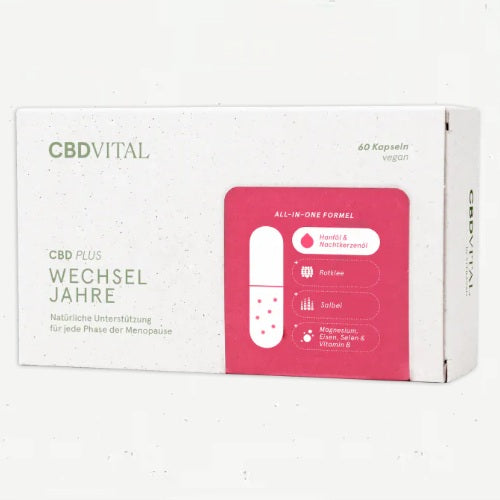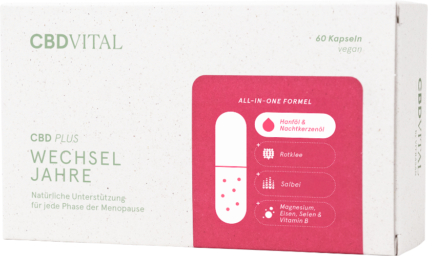 Hitzewallungen, Nachtschweiß und Stimmungsschwankungen sind häufige Probleme in den Wechseljahren, die die Lebensqualität stark beeinträchtigen. CBDplus Wechseljahre von CBDVITAL vereint erstmals hochwertige Öle wie Hanföl und Nachtkerzenöl mit wertvollen Pflanzenextrakten in einer innovativen Kapsel – die umfassende Komplettlösung für Frauen in der Menopause.